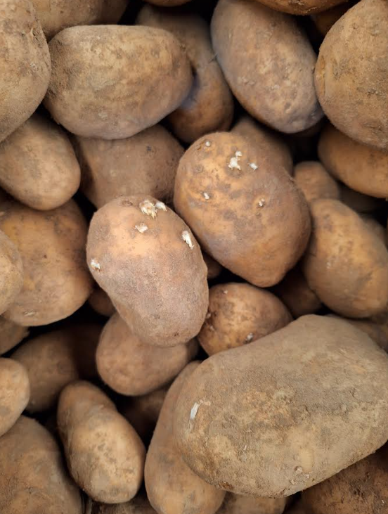 Que ça va vite, depuis la semaine dernière, la récolte de pomme de terre de conservation a débuté. En effet les peaux sont mûres. Sur le marché du lavable, pour préserver la qualité de présentation, il faut récolter. On ne va pas attendre que les taupins ou limaces mangent notre récolte, ni que le rhizoctone noir, la dartrose ou autres maladies telluriques dégradent la qualité.
