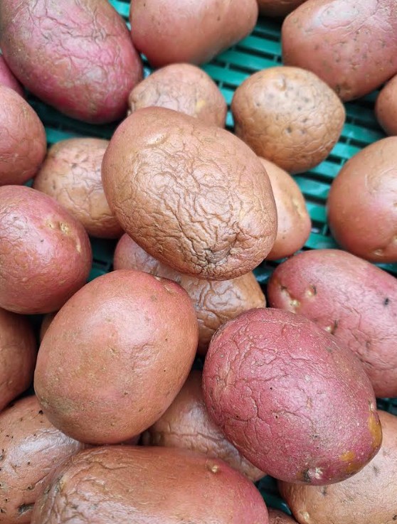 Que ça va vite, depuis la semaine dernière, la récolte de pomme de terre de conservation a débuté. En effet les peaux sont mûres. Sur le marché du lavable, pour préserver la qualité de présentation, il faut récolter. On ne va pas attendre que les taupins ou limaces mangent notre récolte, ni que le rhizoctone noir, la dartrose ou autres maladies telluriques dégradent la qualité.